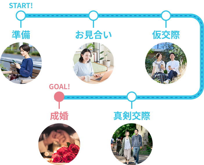 婚活スタート前の準備〜ご成婚まで、徹底的にサポートします。